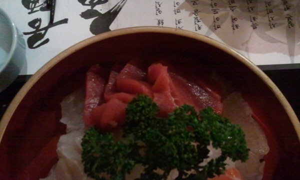 참치회 , 생 연어회 , 그리고 연어샐러드 등등